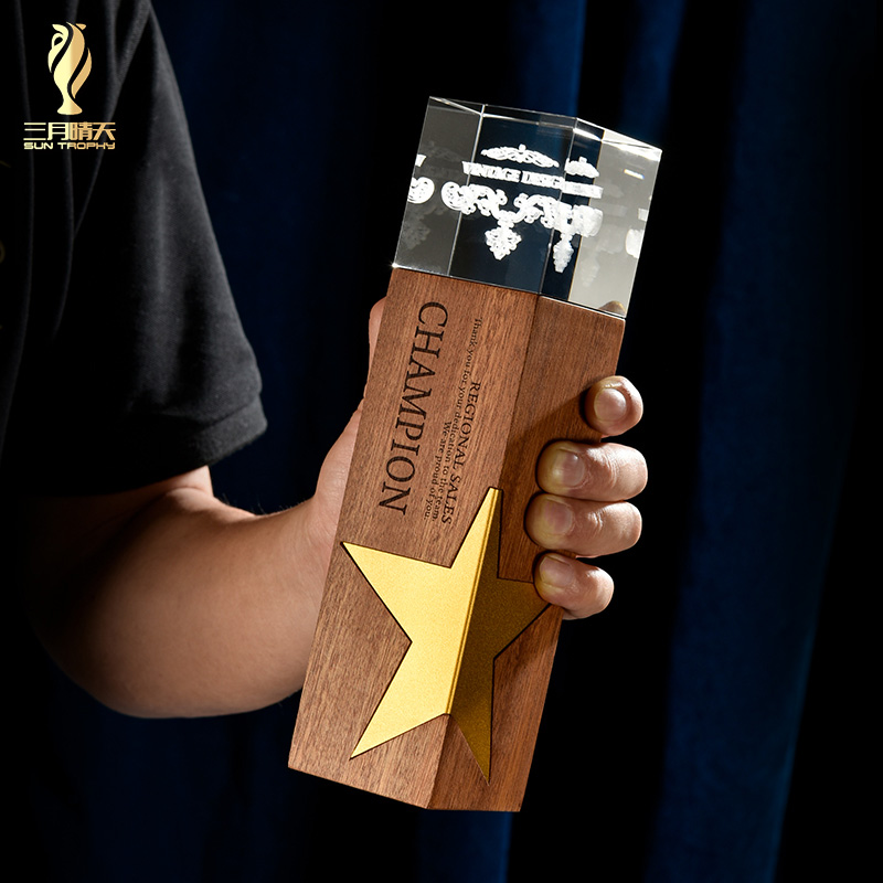 创意水晶奖杯定制木质内雕奖牌授权牌活动比赛企业员工颁奖奖杯